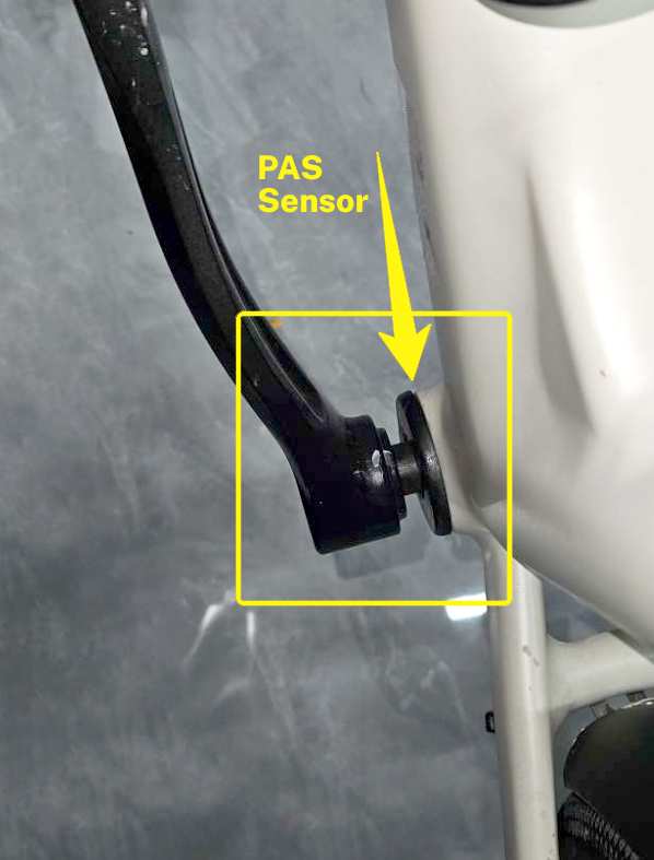 Please check whether the PAS sensor is detached from the bike's central axle shaft. Reinstall it in place if necessary. If the sensor is in place, then there may be something wrong with it. Replace it if necessary.